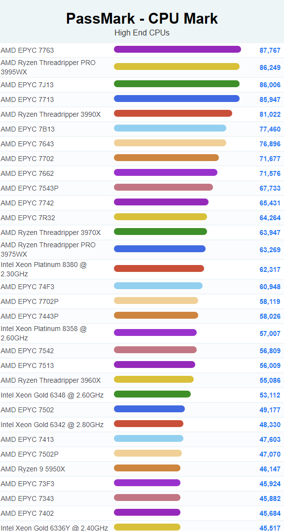 | 2 | AMD Ryzen Threadripper PRO 3995WX | 86,249 |