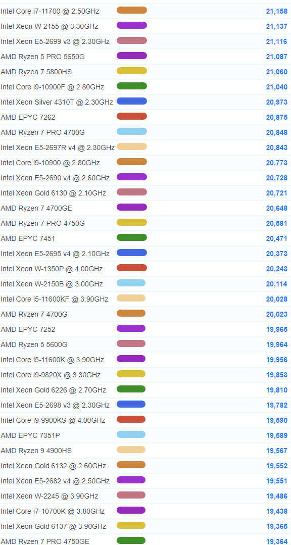 | 80 | Intel Core i9-9990XE @ 4.00GHz | 30,162 |