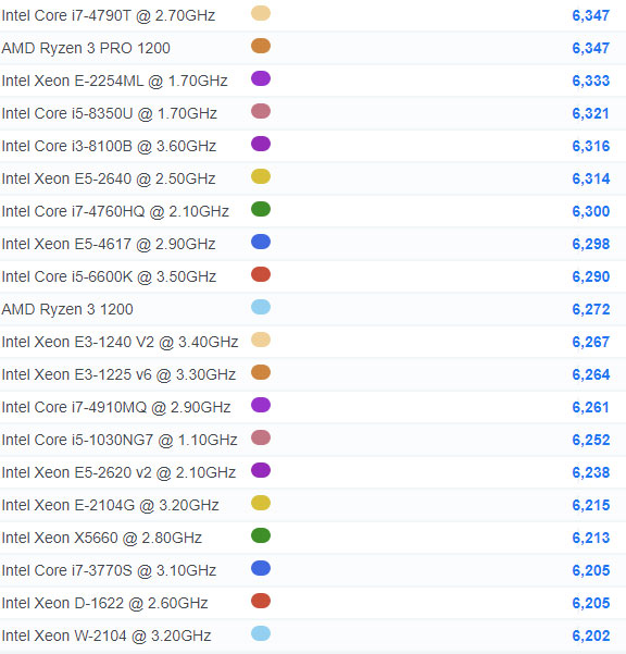 | 888 | AMD Ryzen 3 PRO 1200 | 6,347 |