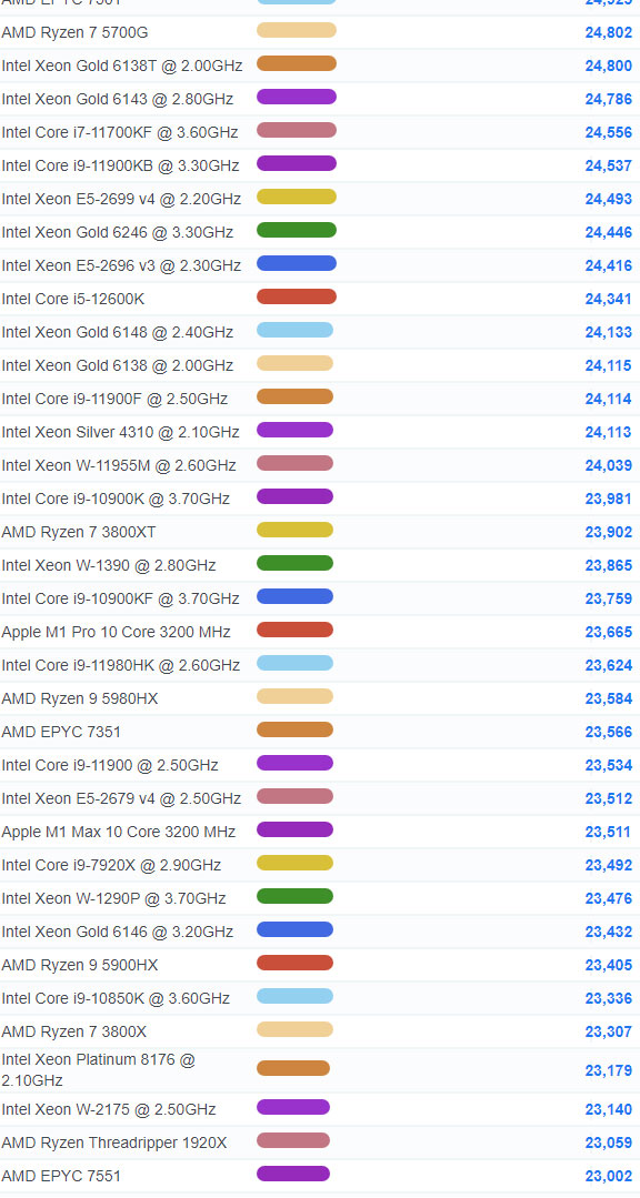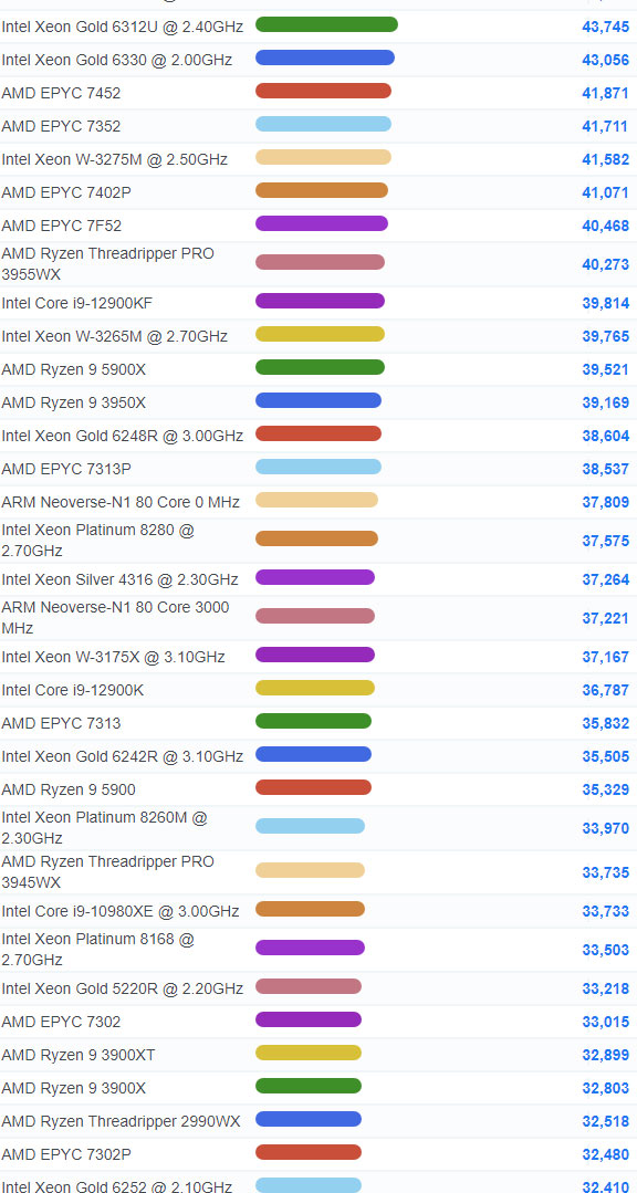 | 52 | Intel Core i9-12900K | 36,787 |