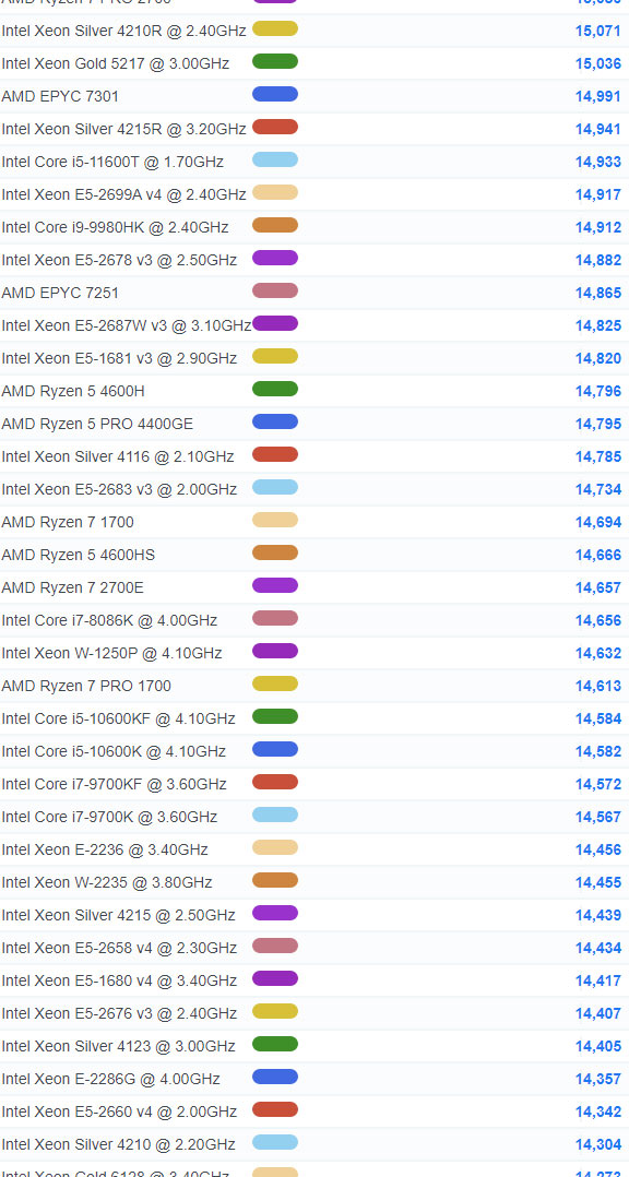| 42 | Intel Xeon W-3265M @ 2.70GHz | 39,765 |