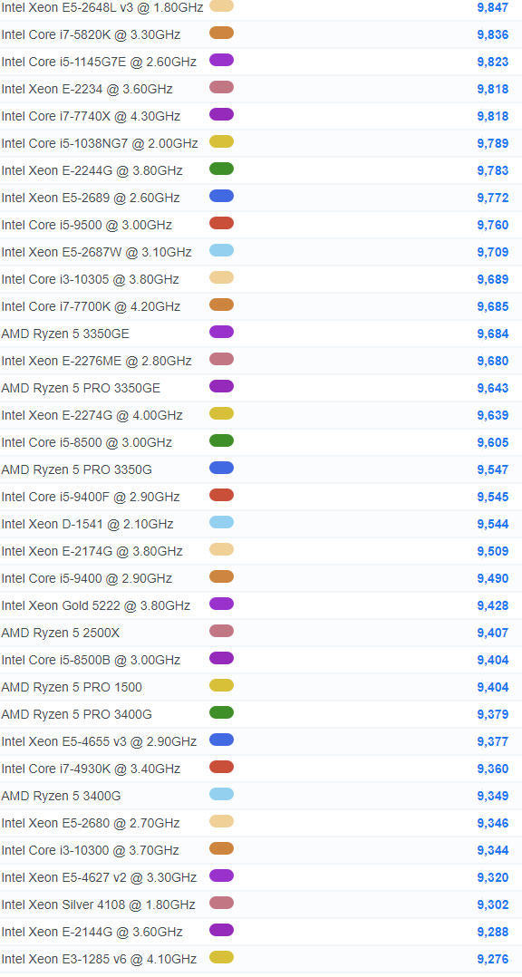 | 843 | Intel Xeon E5-2637 v4 @ 3.50GHz | 6,727 |
