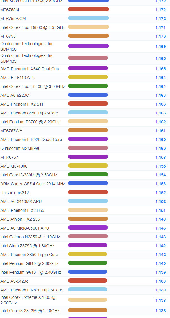| 2691 | Intel Celeron E3500 @ 2.70GHz | 935 |