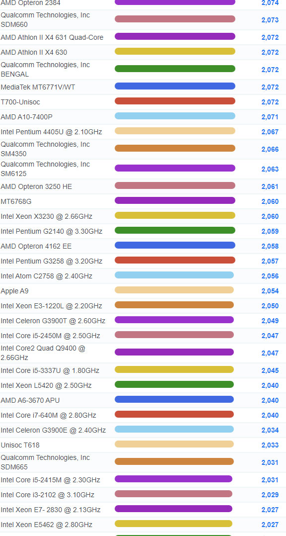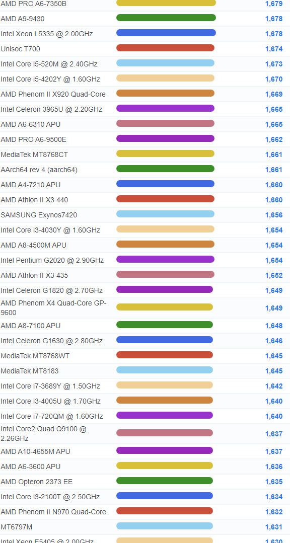 | 1865 | Intel Celeron G3930T @ 2.70GHz | 2,109 |
