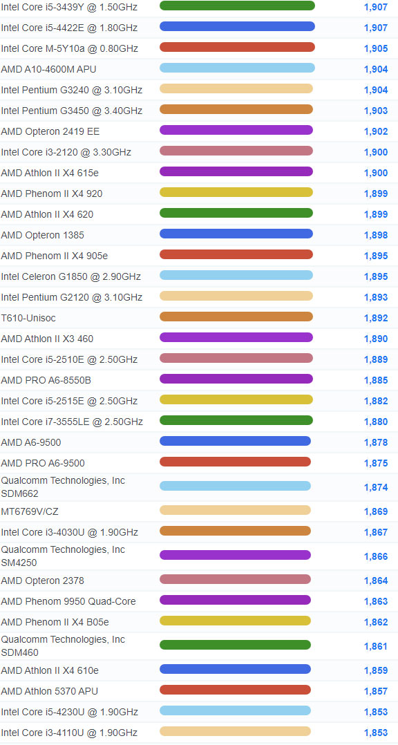 | 1872 | Intel Core i3-2125 @ 3.30GHz | 2,093 |