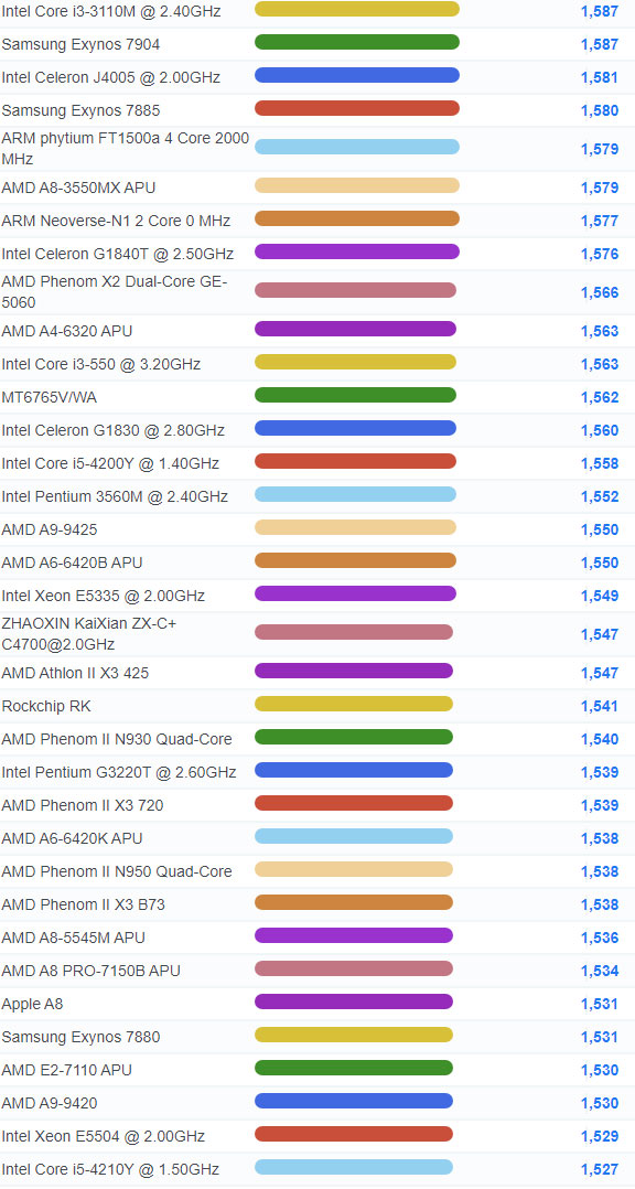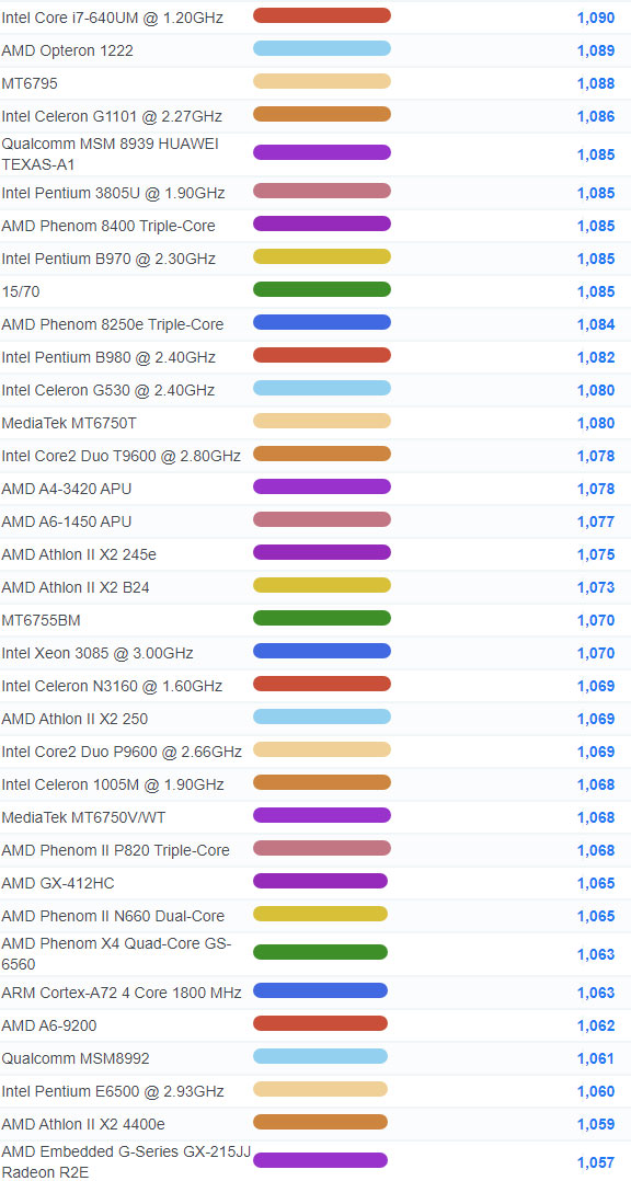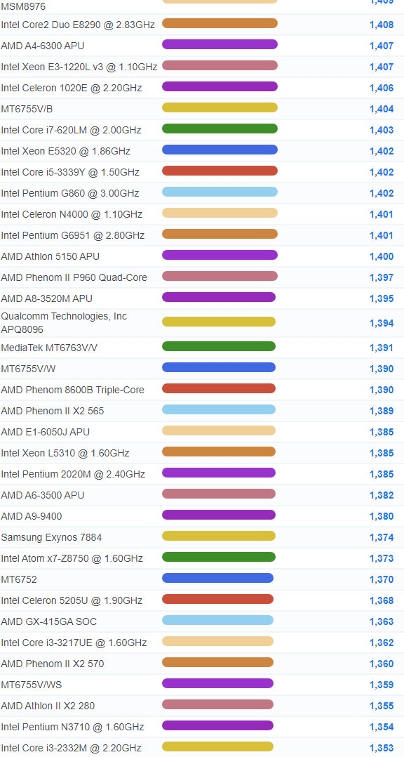 | 2640 | Intel Celeron 2981U @ 1.60GHz | 991 |