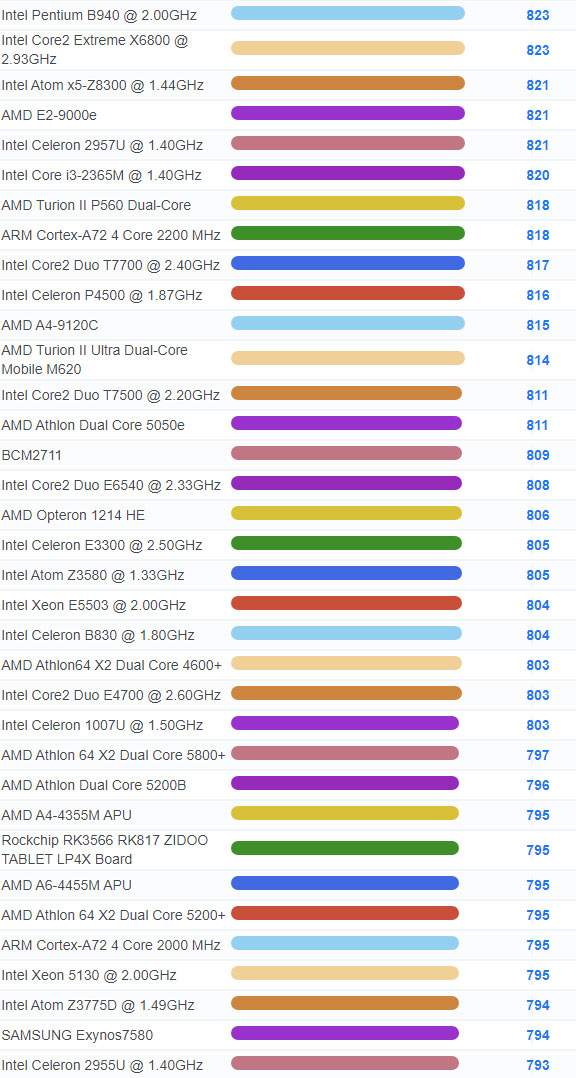 | 2790 | Intel Celeron 2957U @ 1.40GHz | 821 |