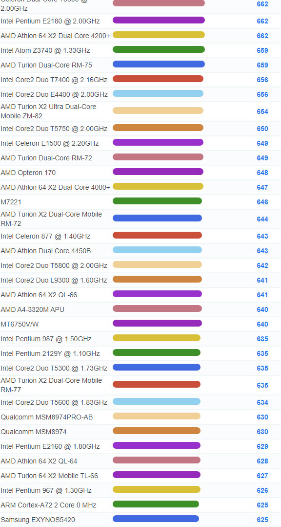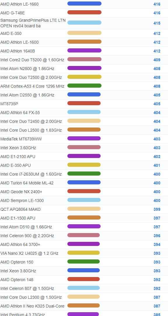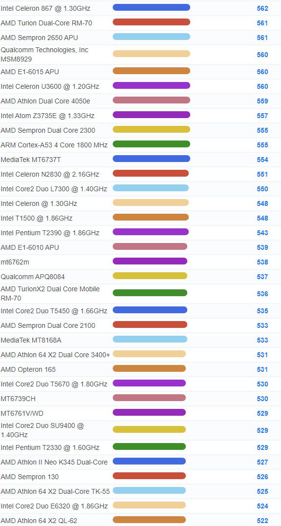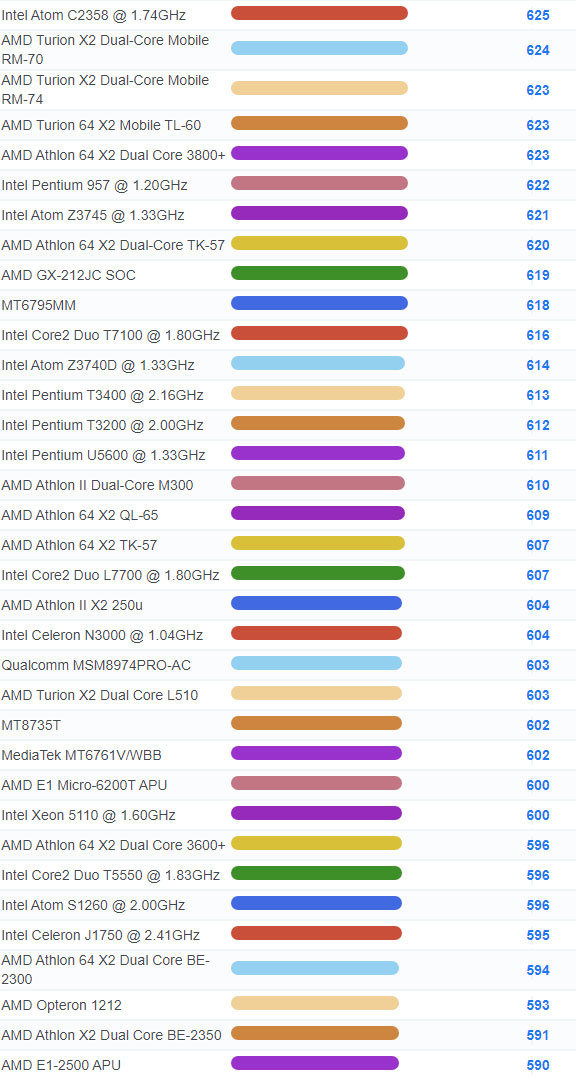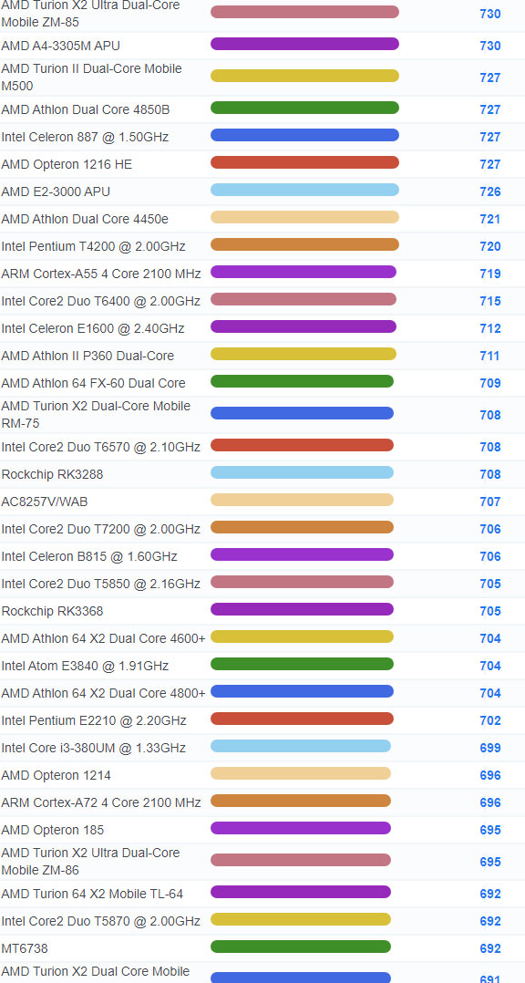 | 2725 | AMD Athlon II N370 Dual-Core | 899 |