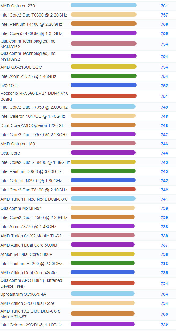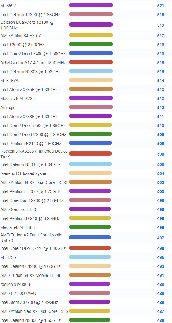 | 2739 | Intel Atom x5-E3930 @ 1.30GHz | 878 |