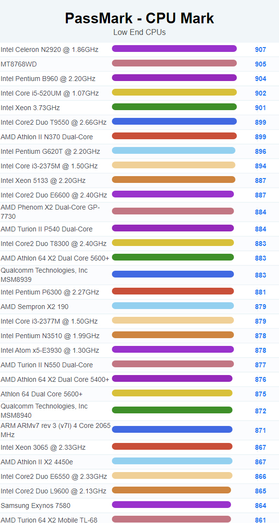 | 2719 | Intel Celeron N2920 @ 1.86GHz | 907 |