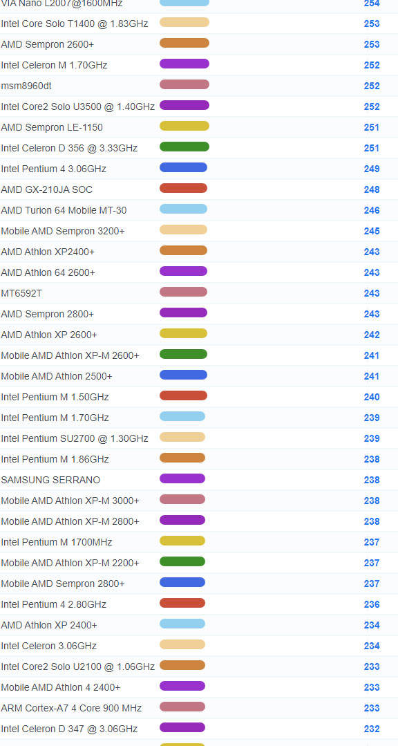| 3539 | Mobile AMD Sempron 2100+ | 164 |