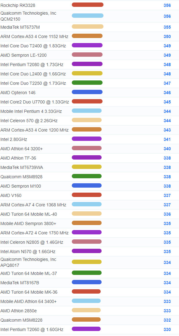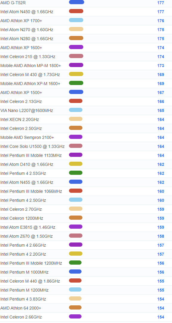 | 3561 | Intel Atom N435 @ 1.33GHz | 153 |
