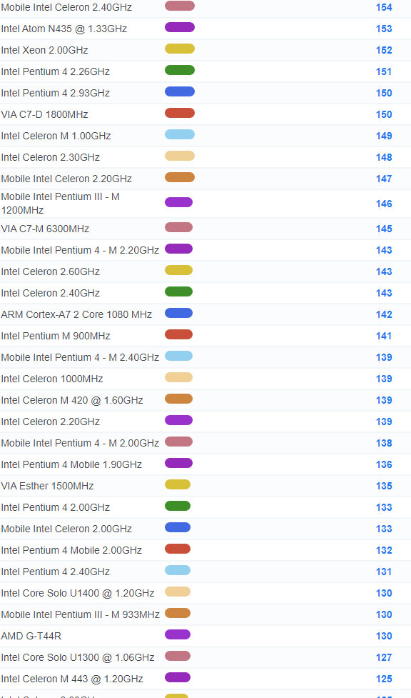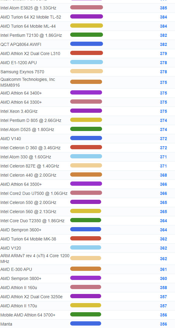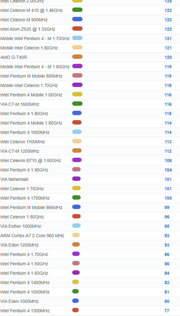 | 3590 | Intel Core Solo U1300 @ 1.06GHz | 127 |