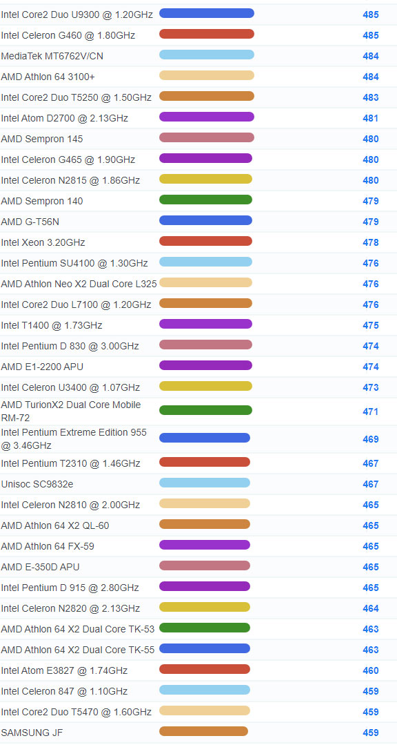 | 2781 | Intel Celeron E3400 @ 2.60GHz | 834 |