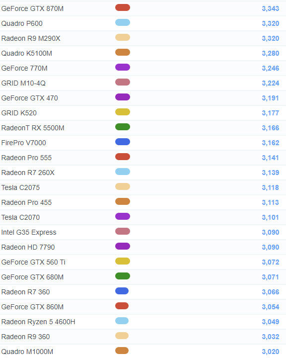 출처 : https://www.videocardbenchmark.net