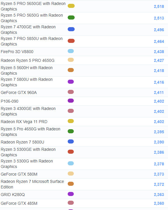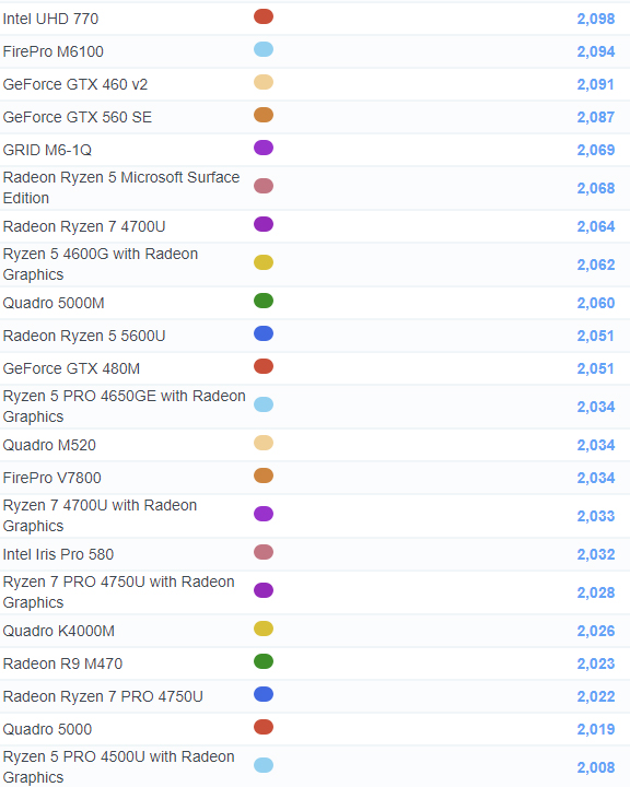 | 516 | Radeon Ryzen 5 5600U | 2,051 |