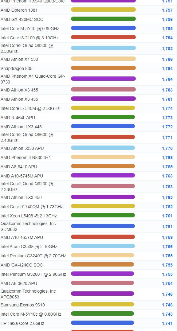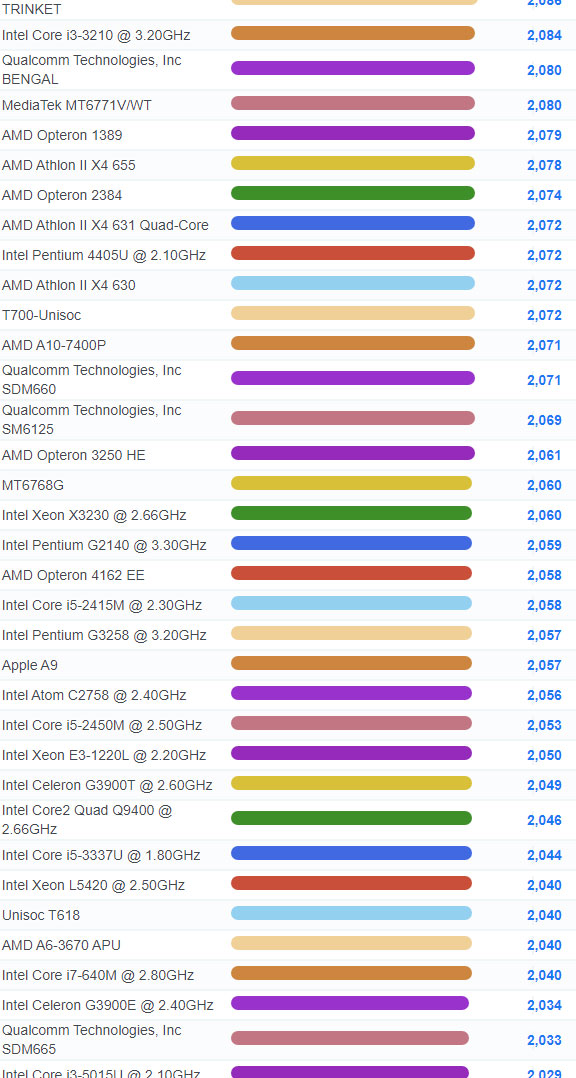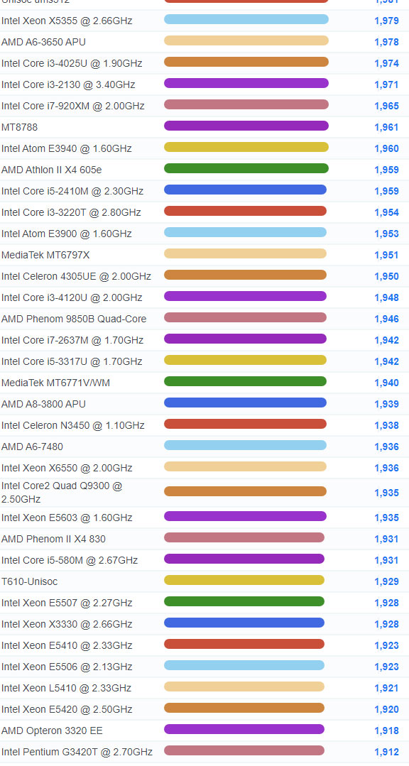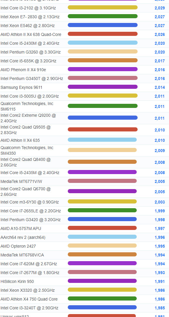 | 1834 | Intel Core i3-21050 @ 3.10GHz | 2,193 |