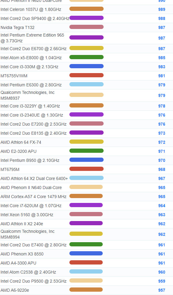 | 2650 | Intel Core2 Duo E8235 @ 2.80GHz | 995 |