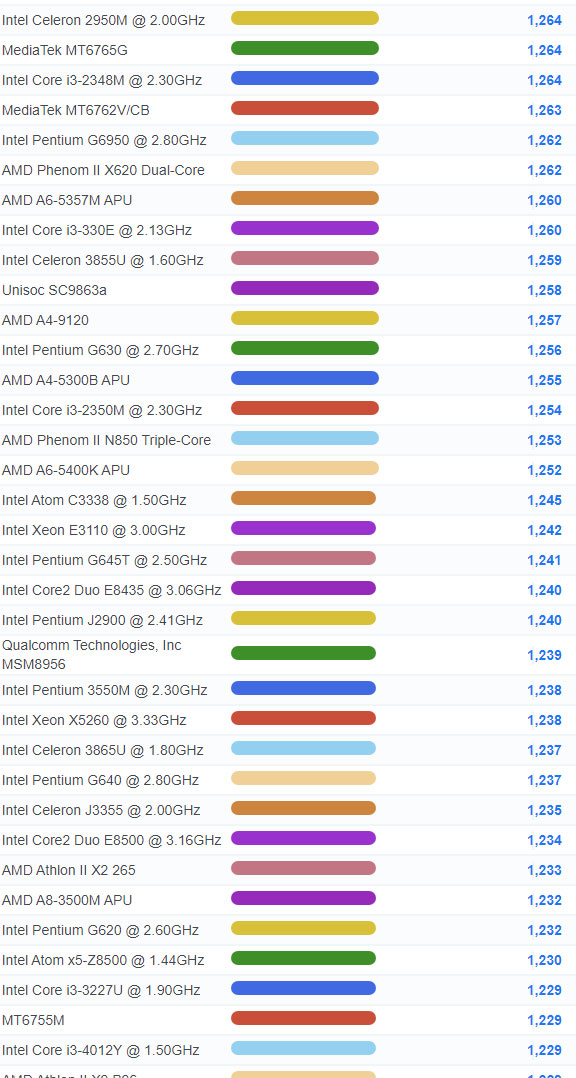 | 2644 | Pentium Dual-Core T4500 @ 2.30GHz | 1,003 |