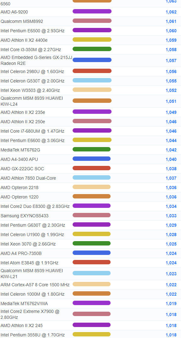 | 2658 | Intel Celeron 1037U @ 1.80GHz | 989 |