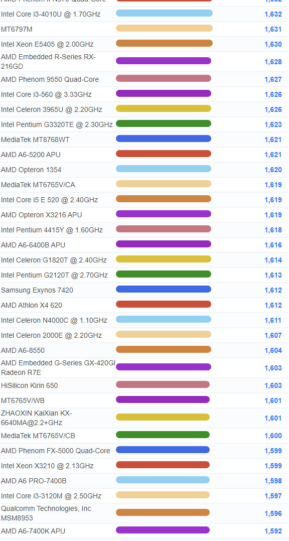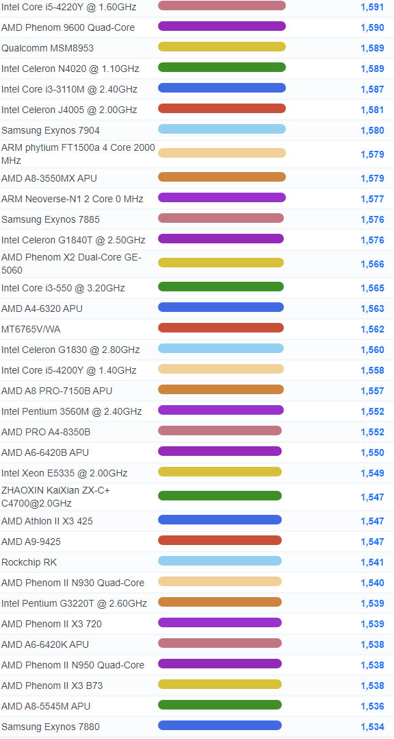 | 2653 | Intel Celeron 2981U @ 1.60GHz | 991 |