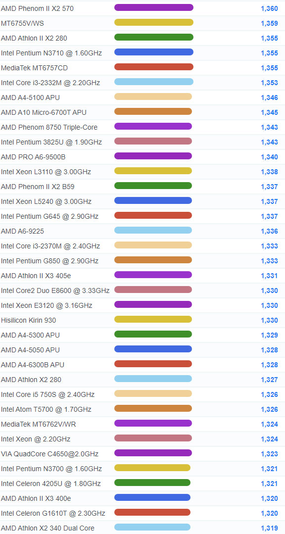 | 2657 | AMD Phenom II N620 Dual-Core | 990 |