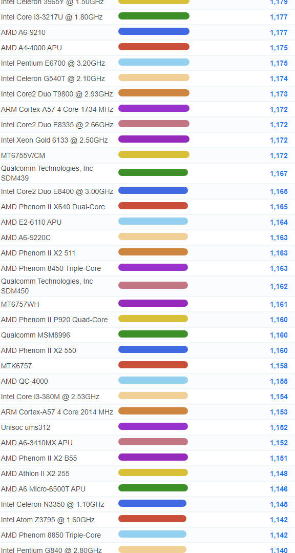| 2711 | Intel Celeron 3205U @ 1.50GHz | 929 |