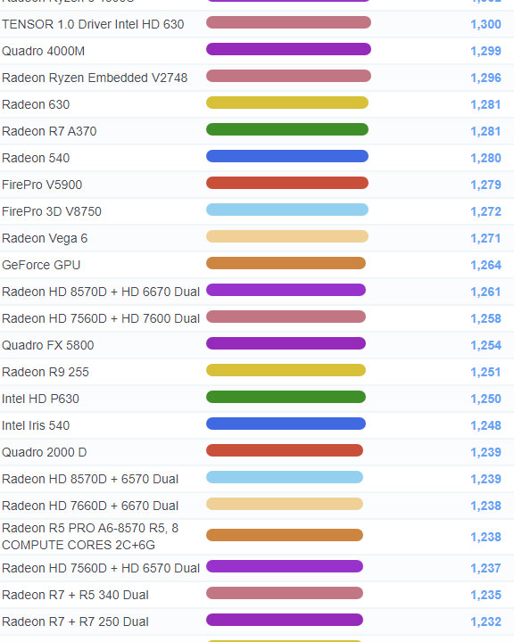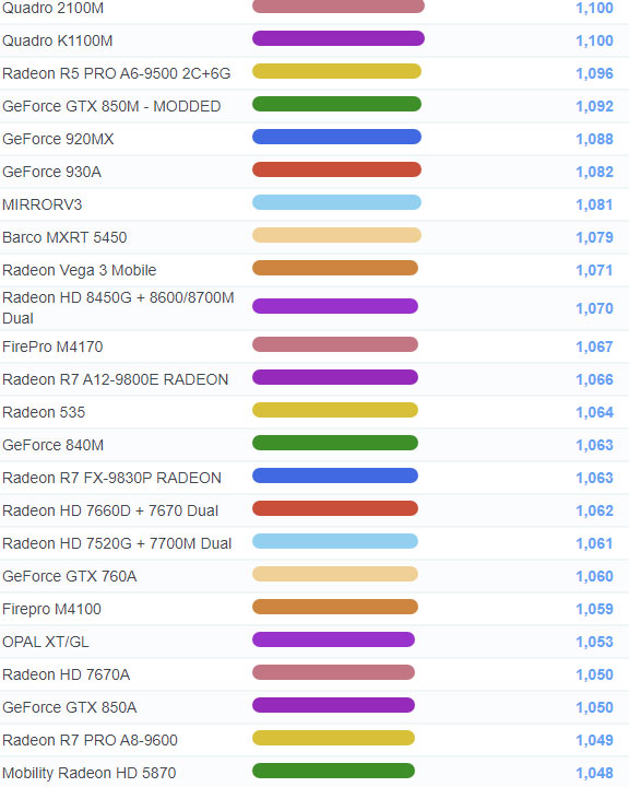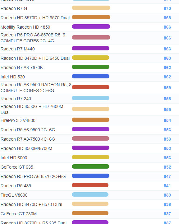 | 1079 | Radeon HD 8650G + R5 M230 Dual | 686 |