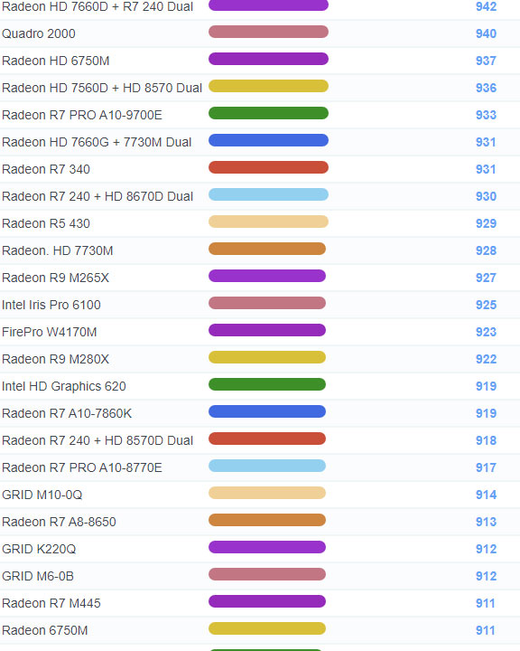 | 1087 | Radeon R7 A12-9700P RADEON | 678 |
