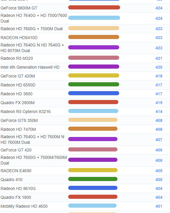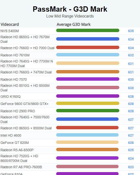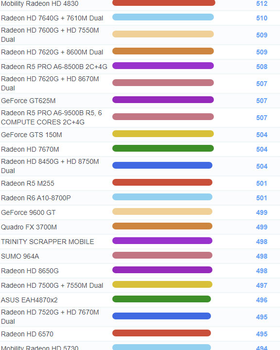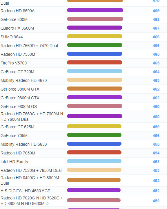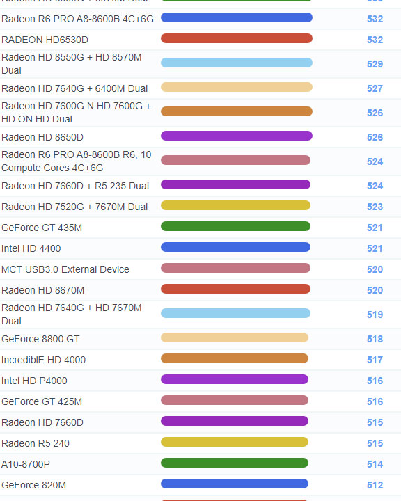 | 1159 | Radeon HD 8550G + R5 M200 Dual | 619 |