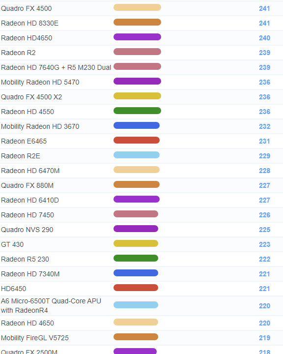 | 1152 | Radeon R7 A8 PRO-7600B | 623 |