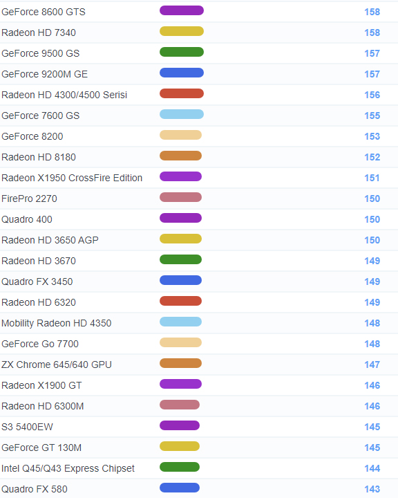 | 1643 | Radeon HD 4300/4500 Serisi | 156 |
