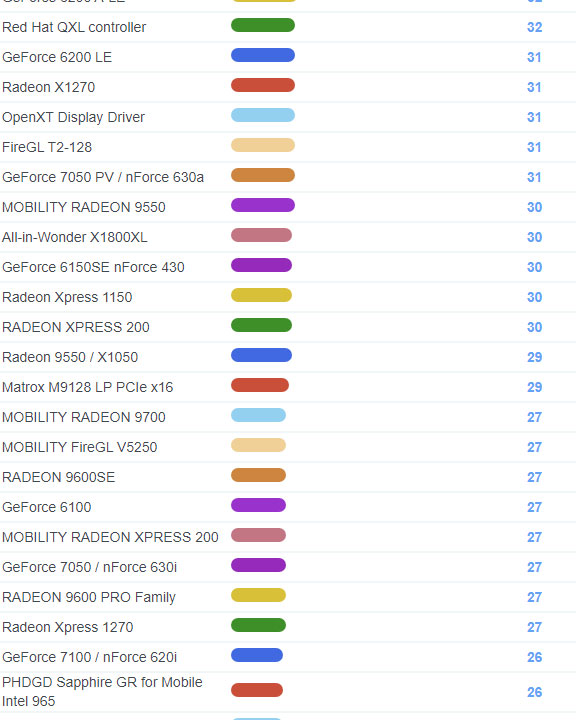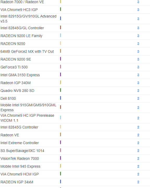 | 1719 | Radeon HD 2400 | 121 |