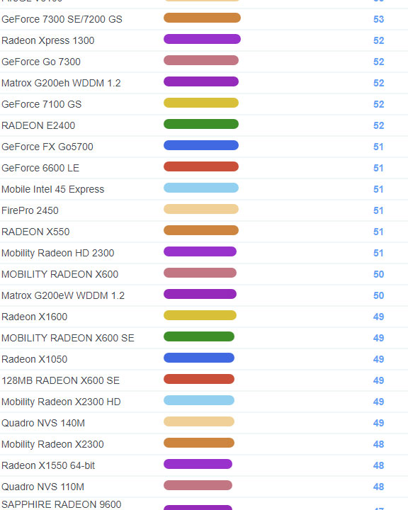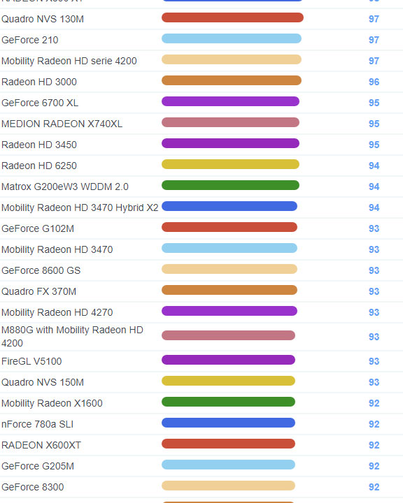 | 1741 | Radeon HD 2400 Pro | 114 |