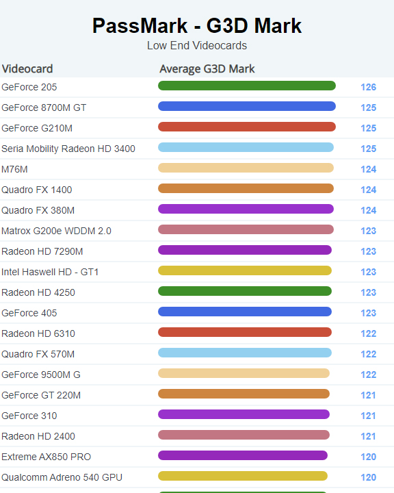 | 1704 | GeForce G210M | 125 |