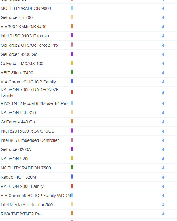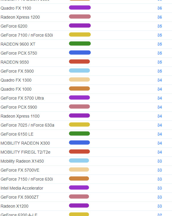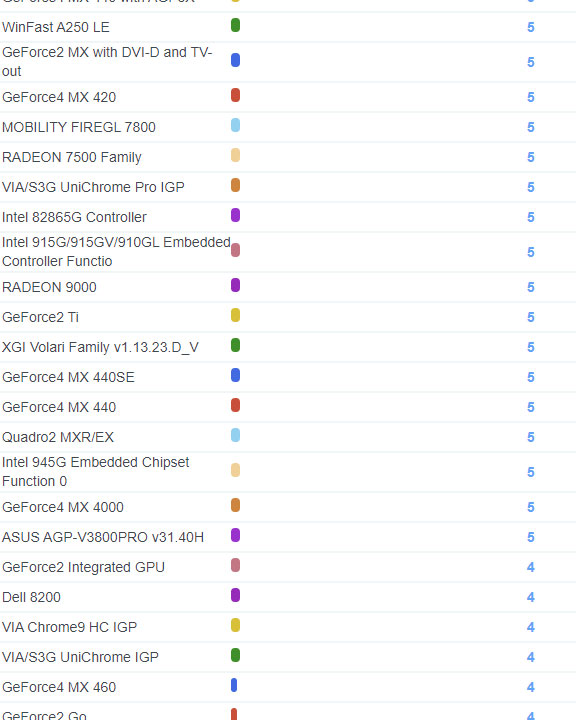 | 2187 | GeForce4 MX 4000 | 5 |