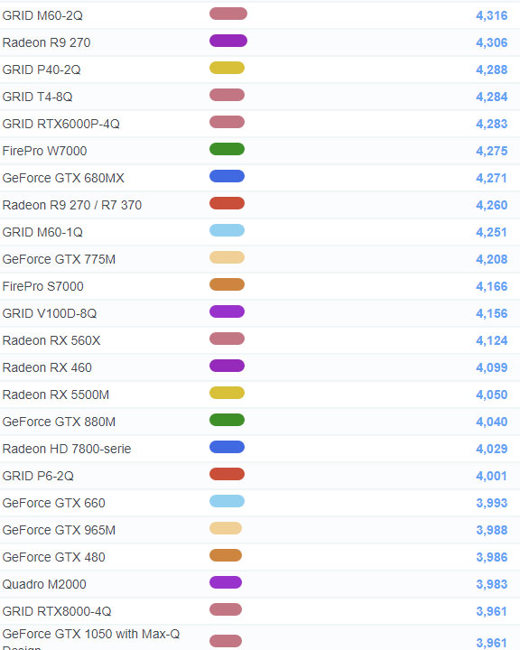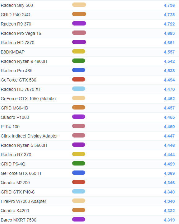 | 34 | RTX A4000 Laptop GPU | 16,532 |