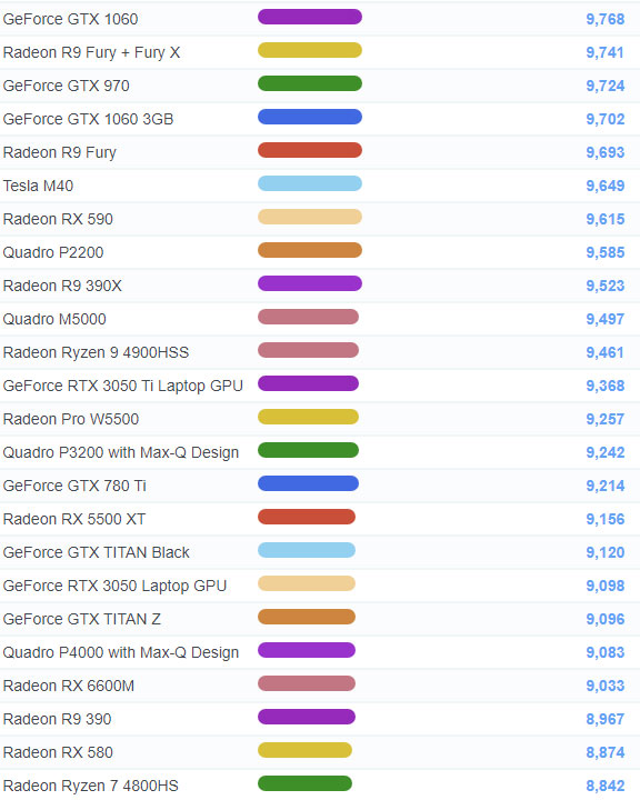 | 36 | GeForce RTX 3080 Laptop GPU | 16,397 |
