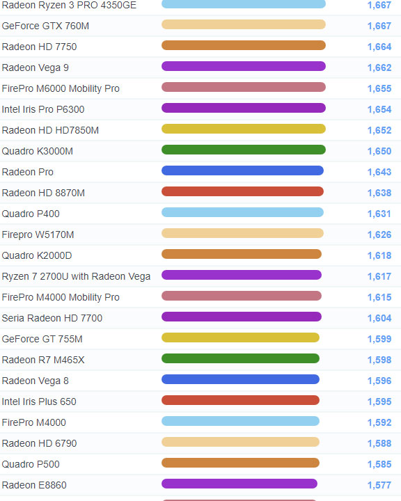 | 590 | Radeon Ryzen 5 PRO 4650U | 1,776 |