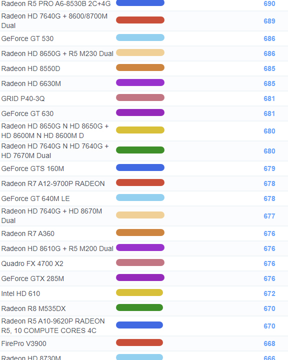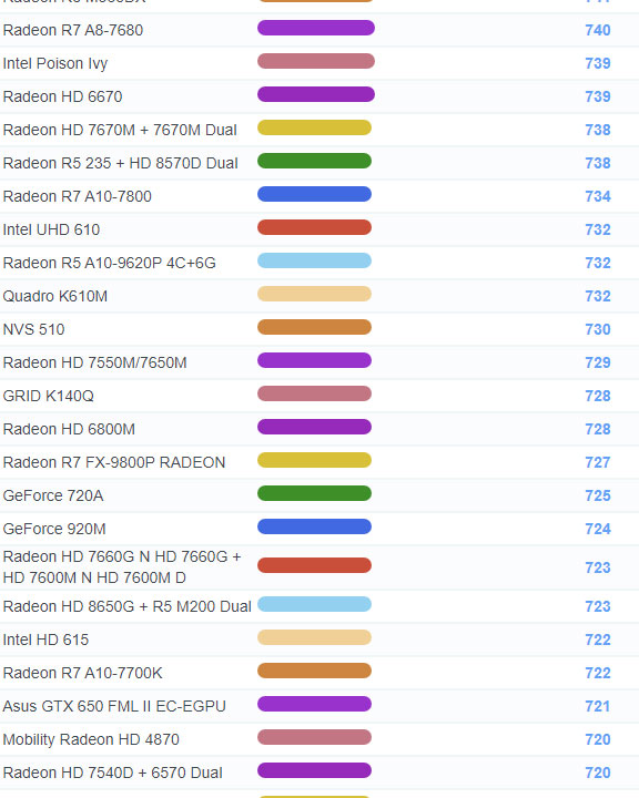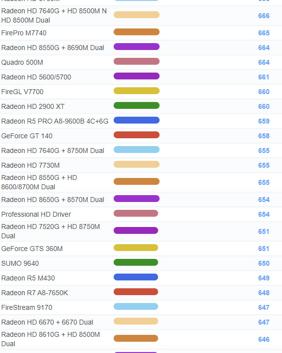 | 1109 | Radeon HD 7730M | 655 |