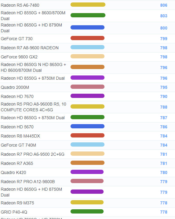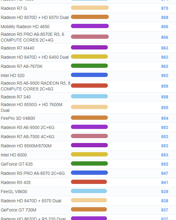 | 1079 | Radeon HD 8650G + R5 M230 Dual | 686 |