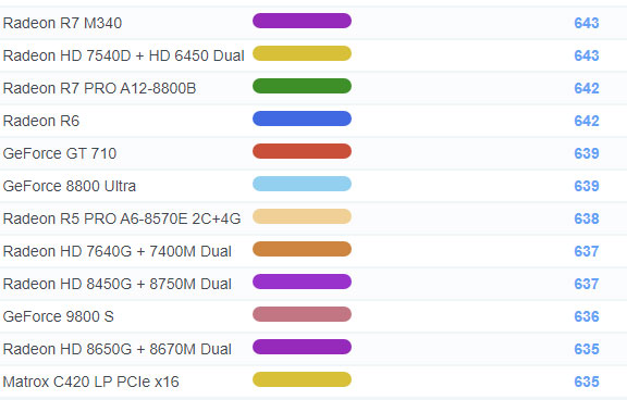 | 1127 | GeForce GT 710 | 639 |