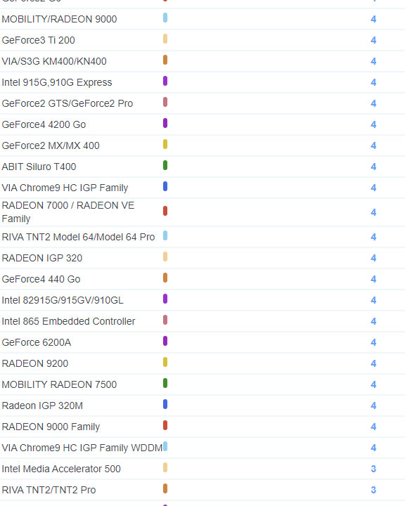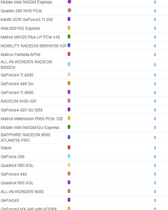 | 2187 | GeForce4 MX 4000 | 5 |