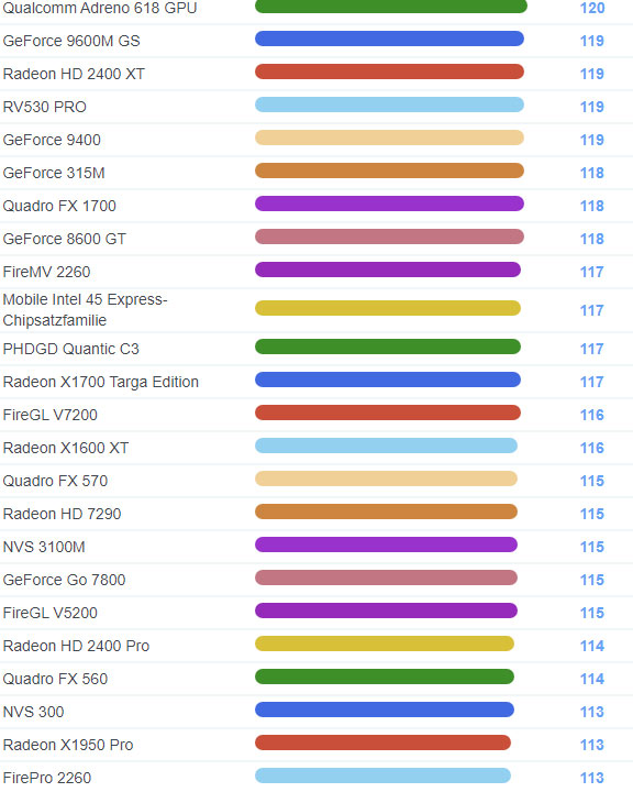 | 1729 | GeForce 8600 GT | 118 |