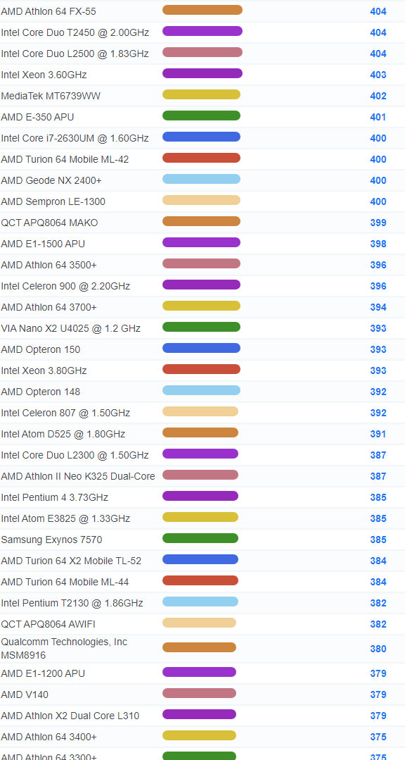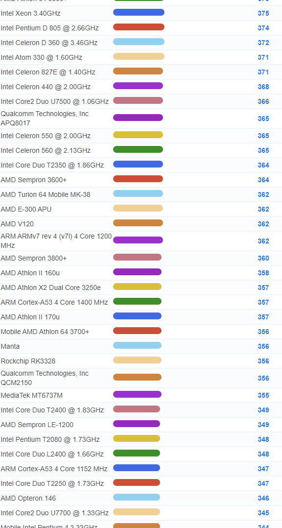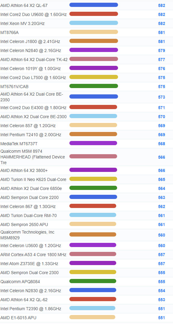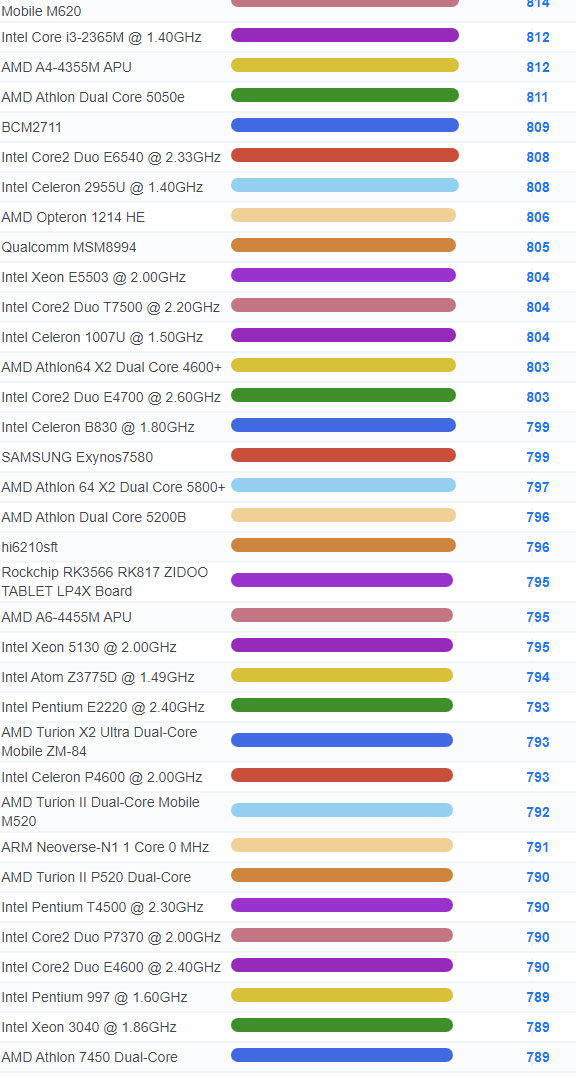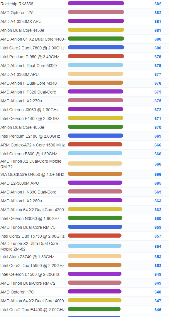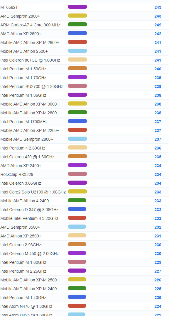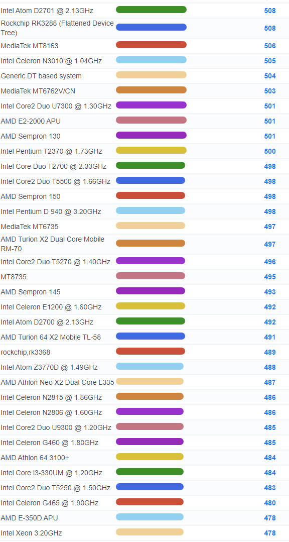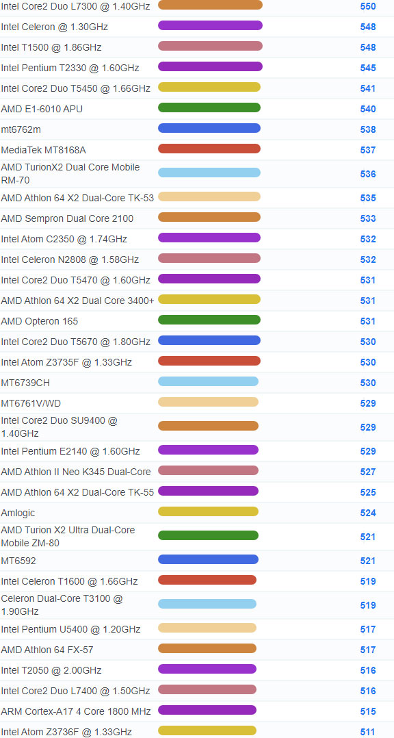 | 2784 | Intel Celeron 3205U @ 1.50GHz | 918 |