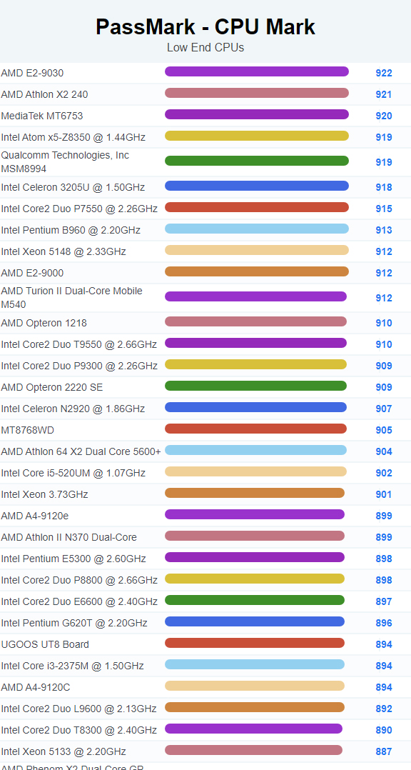 | 2794 | Intel Celeron N2920 @ 1.86GHz | 907 |