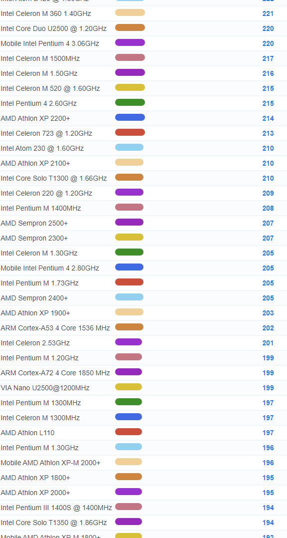 | 3621 | Mobile AMD Sempron 2100+ | 164 |