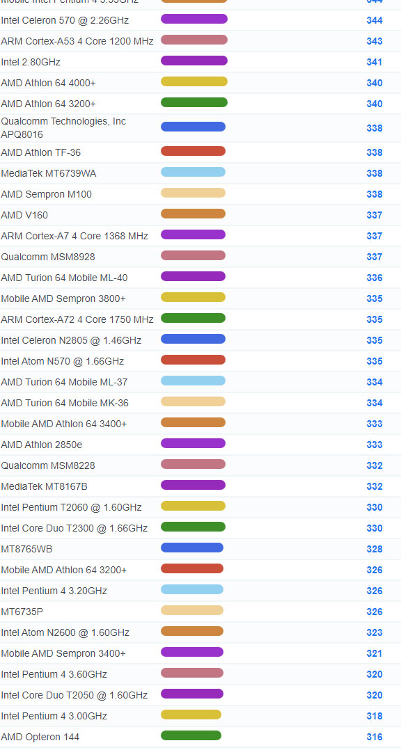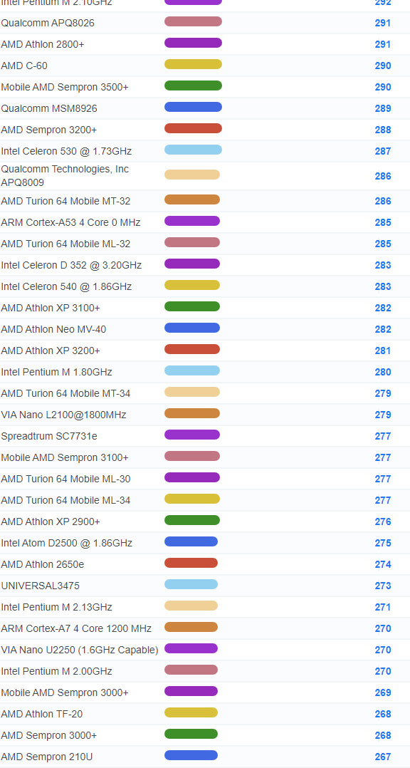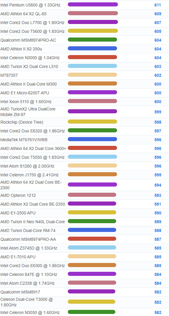 | 3642 | Intel Atom N435 @ 1.33GHz | 153 |