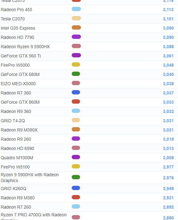 | 48 | GeForce RTX 3070 Laptop GPU | 15,081 |