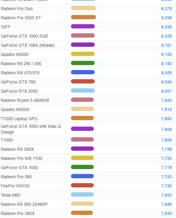 | 60 | Radeon Pro WX 8200 | 14,010 |